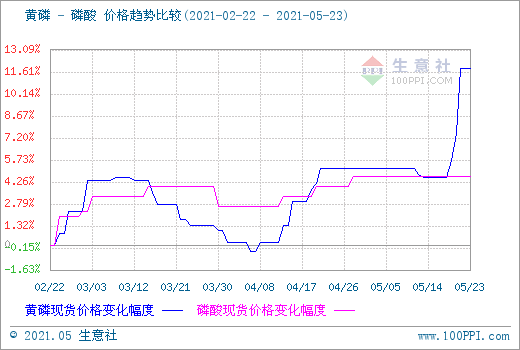 黃磷漲價,必定會對以黃磷為原料的相關的產品,造成一定影響,導致六偏磷酸鈉、三聚磷酸鈉、焦磷酸鈉等等磷酸鹽產品大幅度上漲。進入到5月下旬,黃磷價格出現快速上漲,受云南地區干旱,水少,限電影響,部分地區黃磷企業開功率不足20%!近日限電不但沒有緩解,反而越來越嚴重。黃磷裝置停車較多,現貨緊張情況加劇,部分廠家已暫時停止對外報價。需求方面,下游草甘膦價格持續上行,對高價黃磷接受度尚可,對黃磷價格的上漲起到了一定的助推作用。截止目前云南黃磷主流報價在25000元/噸左右;四川地區主流報價在23000-25000元/噸左右;貴州地區主流報價在21000元/噸左右。